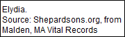 He was not an educated man, but he had so much company in that plight among the early Americans, that it is not specially to his discredit that his will is acknowledged by a cross, with "the marke of Daniell Sheopardson" beneath it. Like most of the Puritans he was intensely superstitious, a believer in signs and omens, and when one day, as he was working at his forge, a stone fell from it and crumbled into powder, he recognized the evil portent and gave to his wife the nails which he was just making, saying, "They will come in handy some day." The nails were kept, and when he died, in Maiden, Mass., 26 July 1644, they were used in the making of his coffin. He had a comfortable home with three acres of ground around it, his blacksmith shop, and fifty acres of pasture and meadow land, scattered here and there, so that his widow, Joanna, who had the use of the property during her lifetime, was quite well fixed for a woman of the day. His family comprised a son, Daniel, and two daughters, Lydia4 and Joanna.